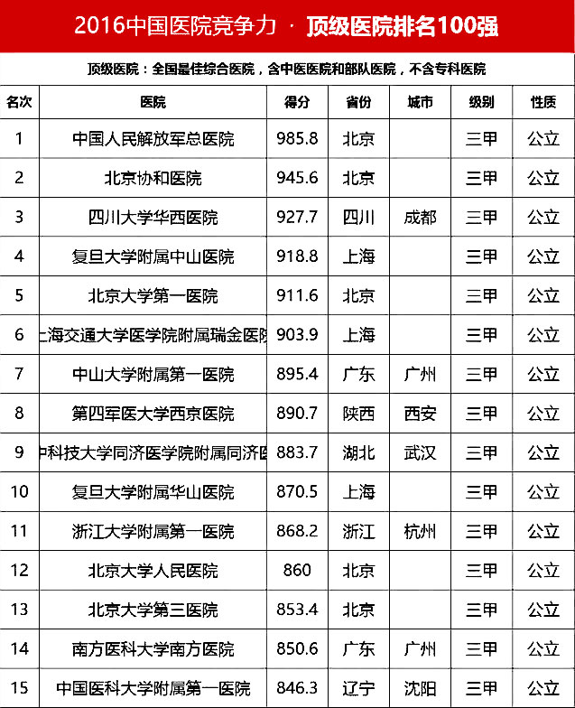 “頂級(jí)醫(yī)院100強(qiáng)”采用的排名指標(biāo)體系包括四個(gè)方面:醫(yī)院最優(yōu)規(guī)模(實(shí)開床位數(shù)、年門急診量、年出院量、全院人數(shù));醫(yī)療技術(shù)(正高職稱人數(shù)/全院人數(shù)、全院醫(yī)師人數(shù)/實(shí)開床位數(shù)、醫(yī)療設(shè)備資產(chǎn)/總資產(chǎn)、年住院手術(shù)量/年出院量、國家級(jí)衛(wèi)紀(jì)委臨床重點(diǎn)???總??茣CU床占比);醫(yī)院運(yùn)行(平均住院天數(shù)、床位使用率、門診均次費(fèi)用/當(dāng)?shù)厝司鵊DP、住院均次費(fèi)用/當(dāng)?shù)厝司鵊DP、外省住院病人占比);學(xué)術(shù)影響力(院士人數(shù)、學(xué)術(shù)領(lǐng)袖占比、教育部重點(diǎn)學(xué)科及重點(diǎn)實(shí)驗(yàn)室/總??茢?shù)、本年度獲國家自然科學(xué)基金項(xiàng)目數(shù)量和總?cè)~)。